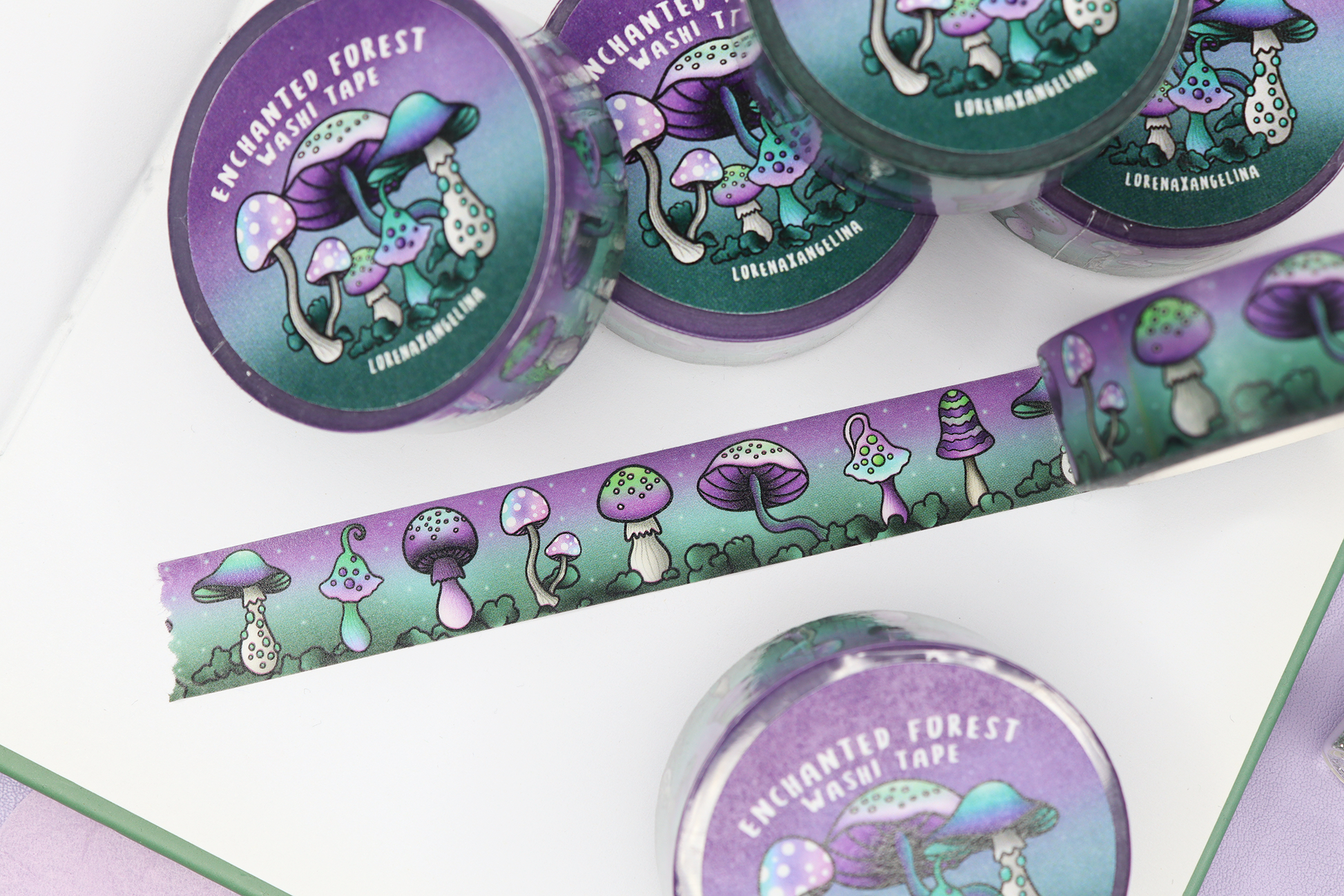Hochwertiges Washi Tape mit meinen „Enchanted Forest“ Pilz-Zeichnungen.