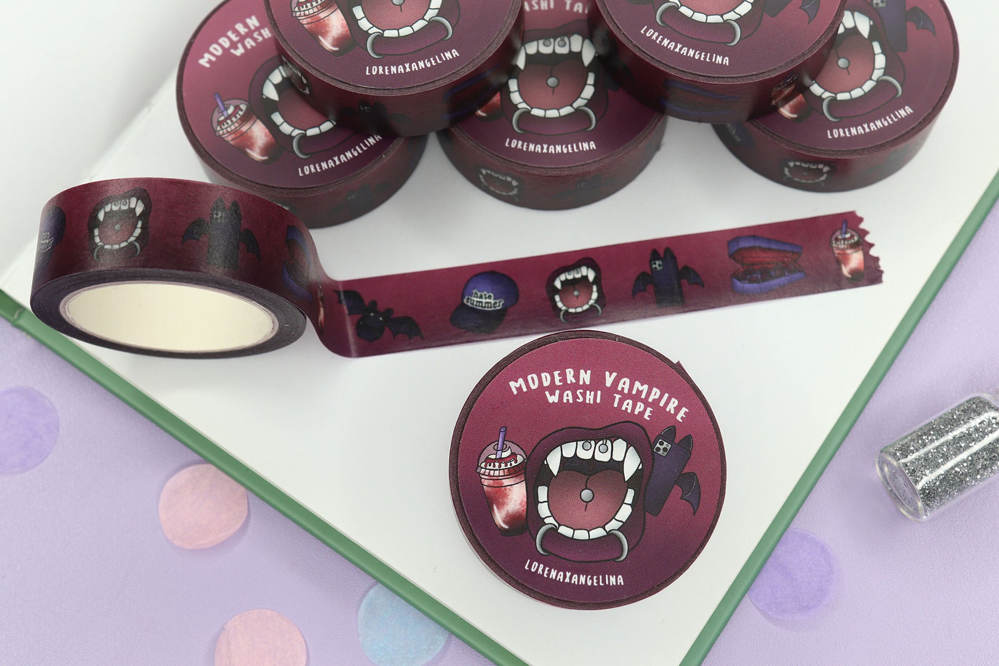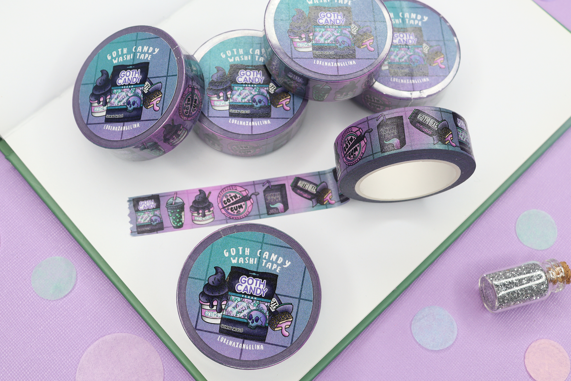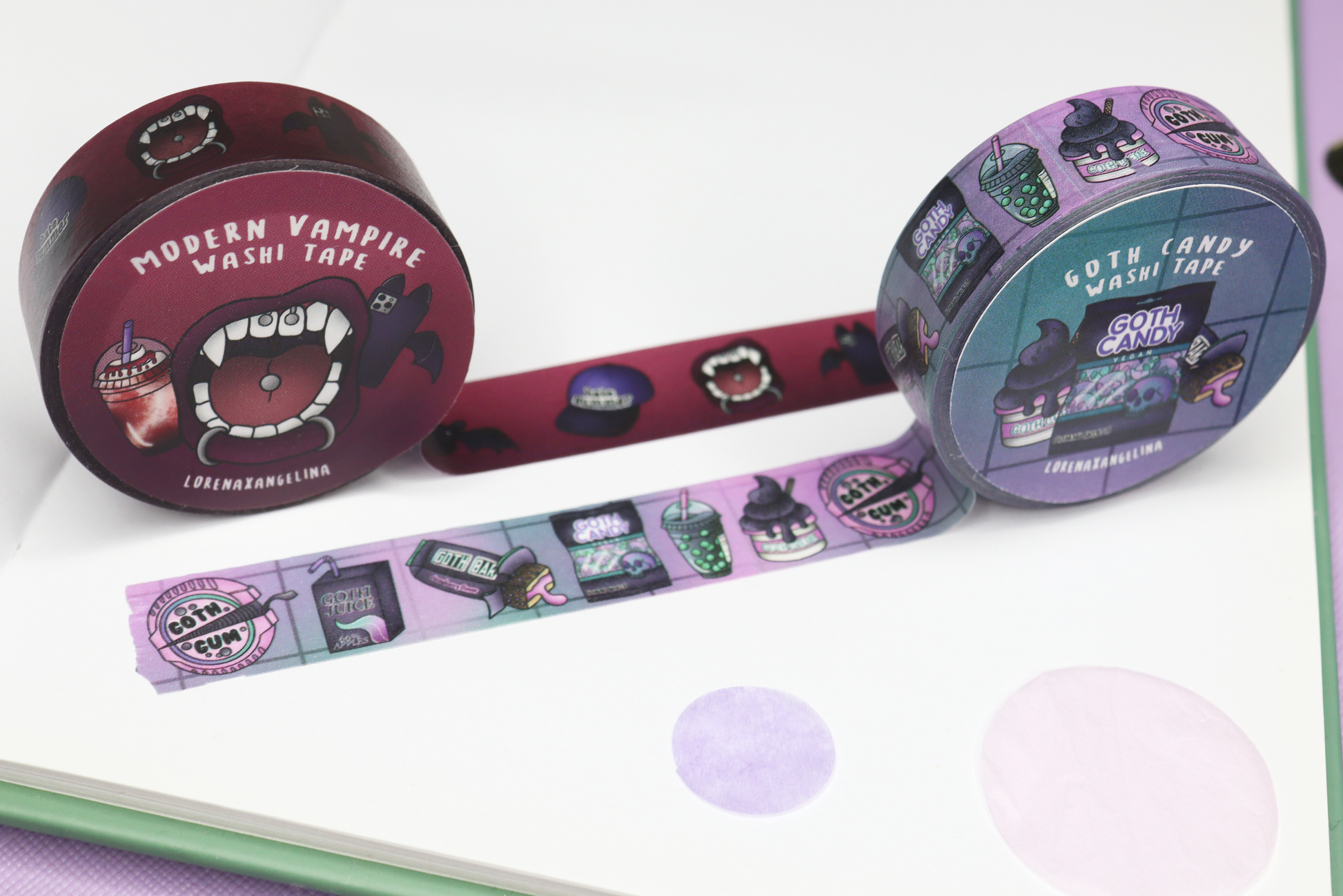 Hochwertige Goth Washi Tapes, mit alternativen, modernen Vampir oder Süßigkeiten Motiven verziert ist. Diese Washi Tapes sind perfekt zum Dekorieren von deinem Planner, Notizbuch, Fotoalbum oder Scrapbook. Washi Tapes sind aber auch anders und vielseitig einsetzbar, wie zum Beispiel zum Dekorieren von magischen Geschenken oder für Diamond Painting.
