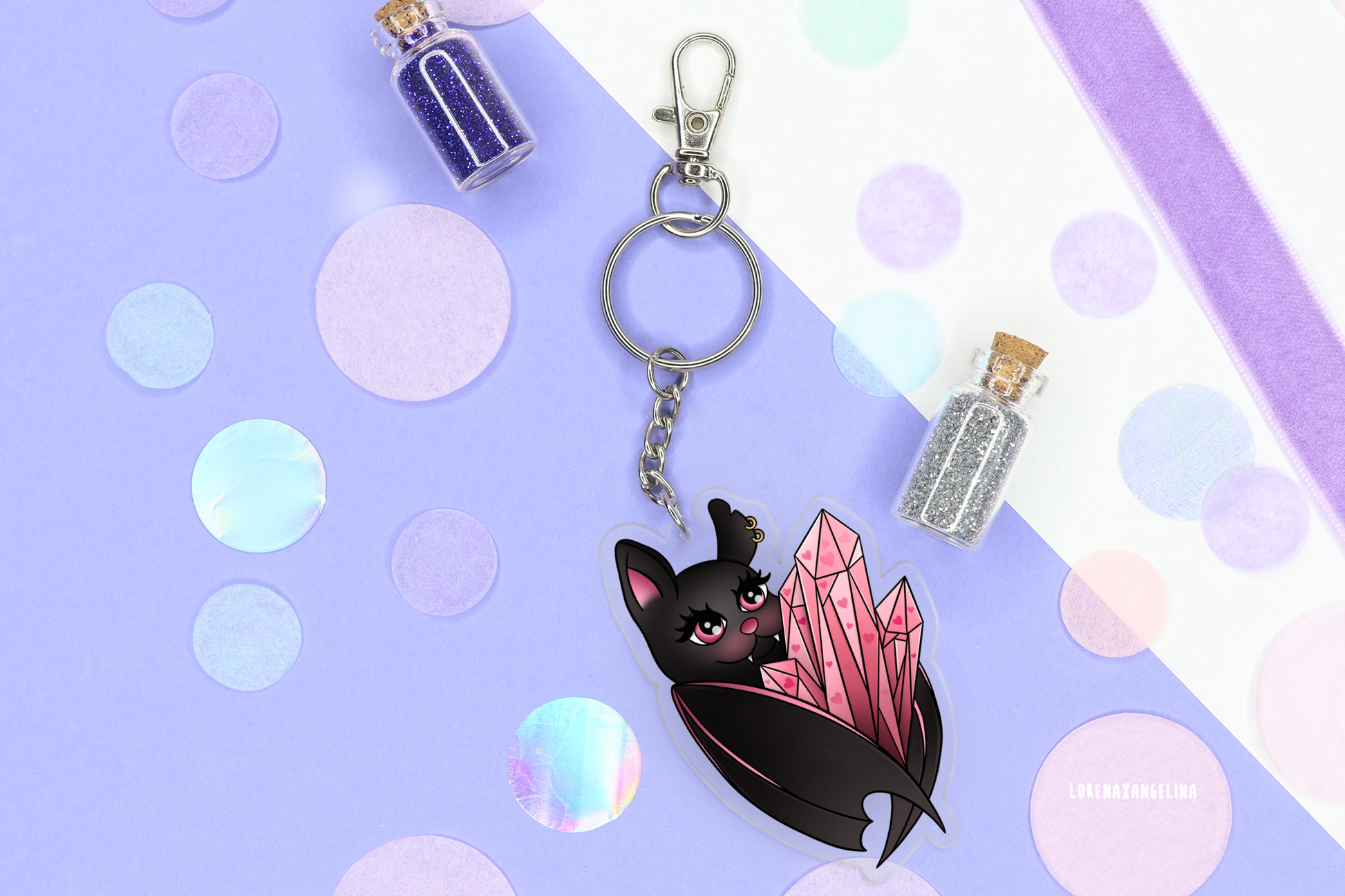 Schlüsselanhänger aus 100% recyceltem Acrylic mit meiner „ Crystal Bat“ Zeichnung. Er kann wieder komplett recycelt werden. Enthalten ist außerdem ein Haken, damit lässt sich der Anhänger besonders leicht nutzen. Du kannst diesen Anhänger zum Beispiel perfekt an deinem Rucksack oder deiner Tasche befestigen.