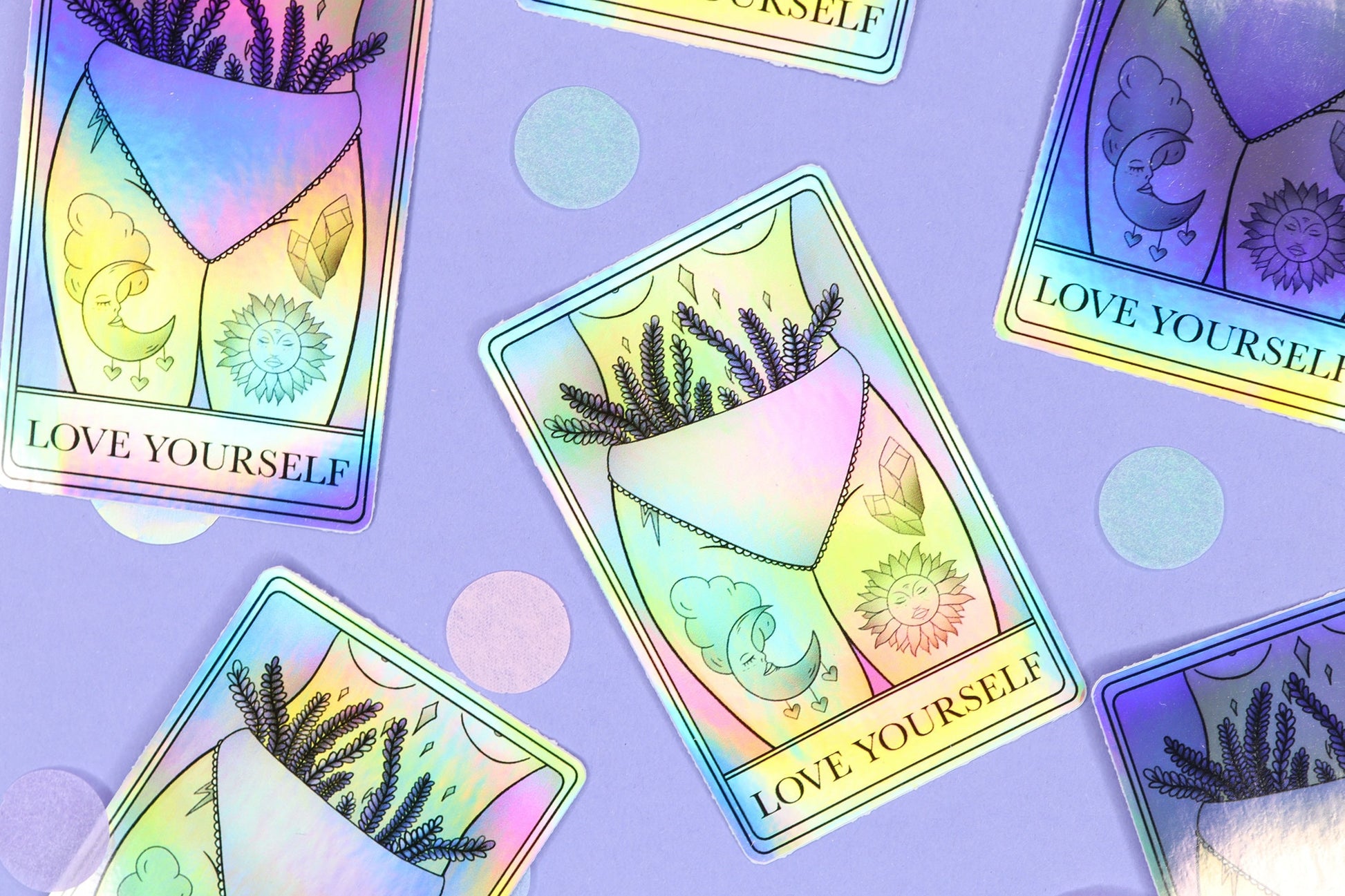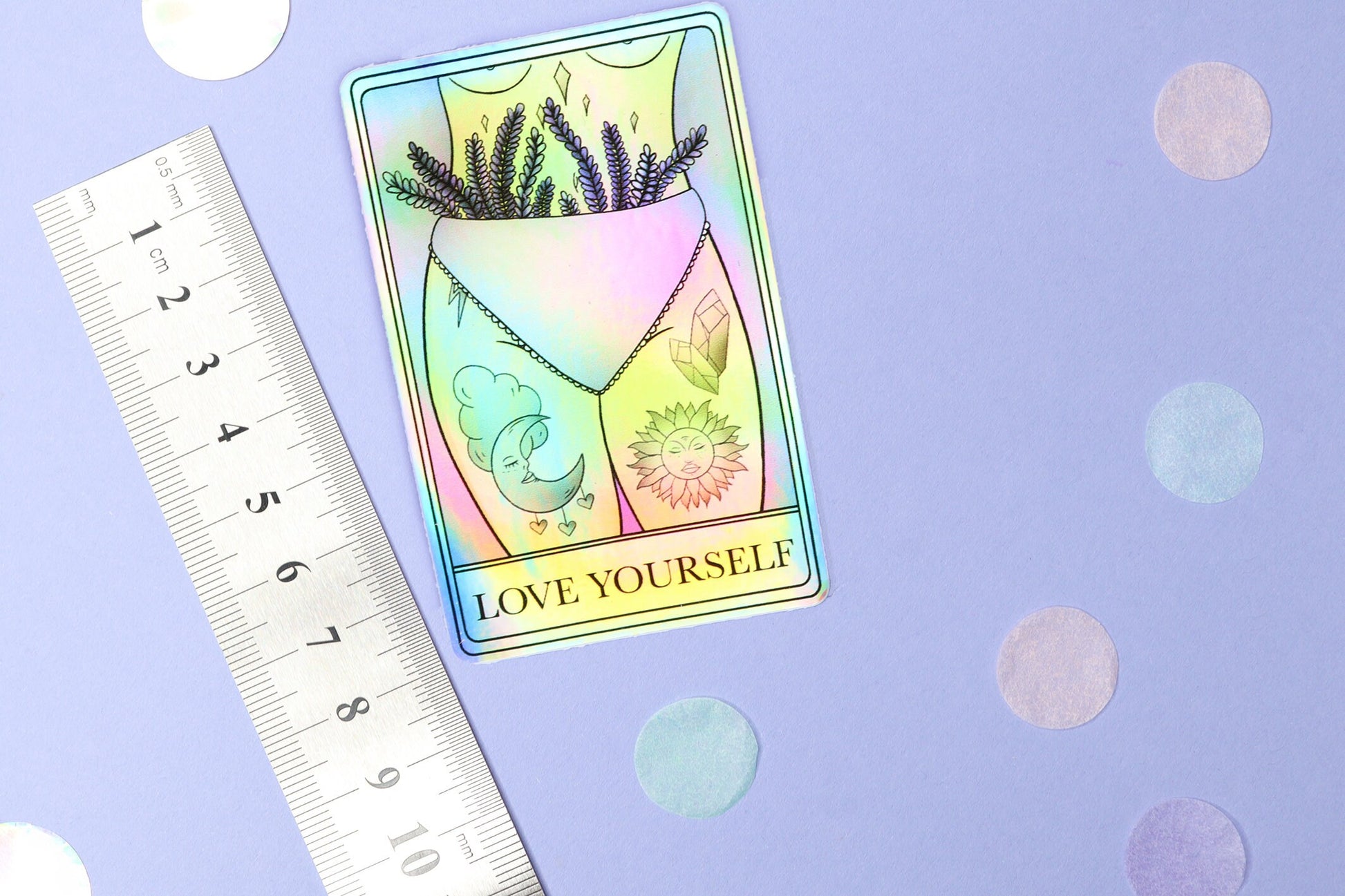 Hochwertiger Aufkleber mit meiner „Love Yourself“ Zeichnung. Dieser Aufkleber ist wetterfest und vor UV-Strahlen geschützt, also auch für den Außenbereich geeignet! Dekoriere deinen Laptop, Auto, Smartphone, Wasserflasche oder jeden anderen Gegenstand.