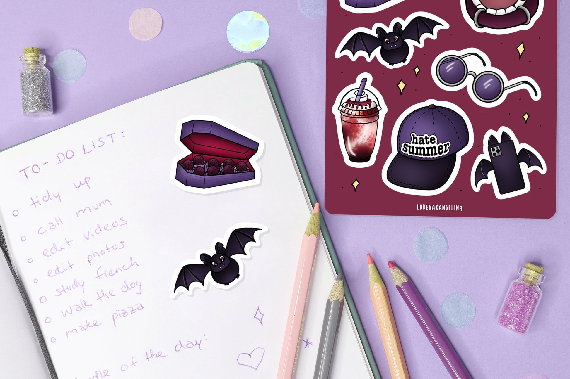 Hochwertiges Aufkleber Blatt mit meinen „Modern Vampire“ Zeichnungen. Dekoriere deinen Laptop, Bullet Journal, Notizbuch, Daily Planner, Tagebuch, Scrapbook oder jeden anderen Gegenstand. Die Aufkleber sind umwelt-freundlich hergestellt.