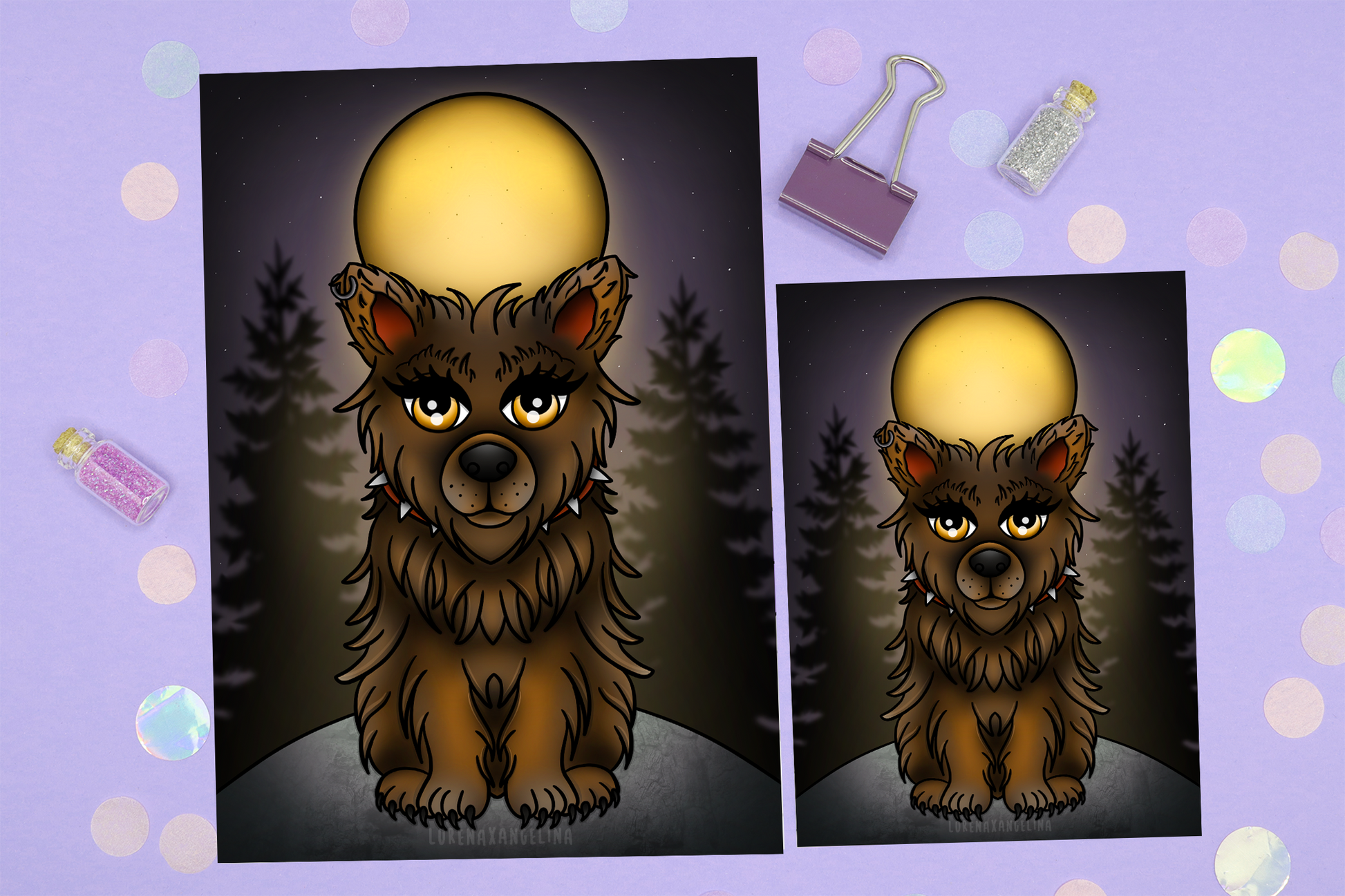Hochwertiger Kunstdruck mit meiner „Moonlight Werwolf“ Zeichnung. Auf premium 280g/m² Fotopapier gedruckt. (Ohne Wasserzeichen)