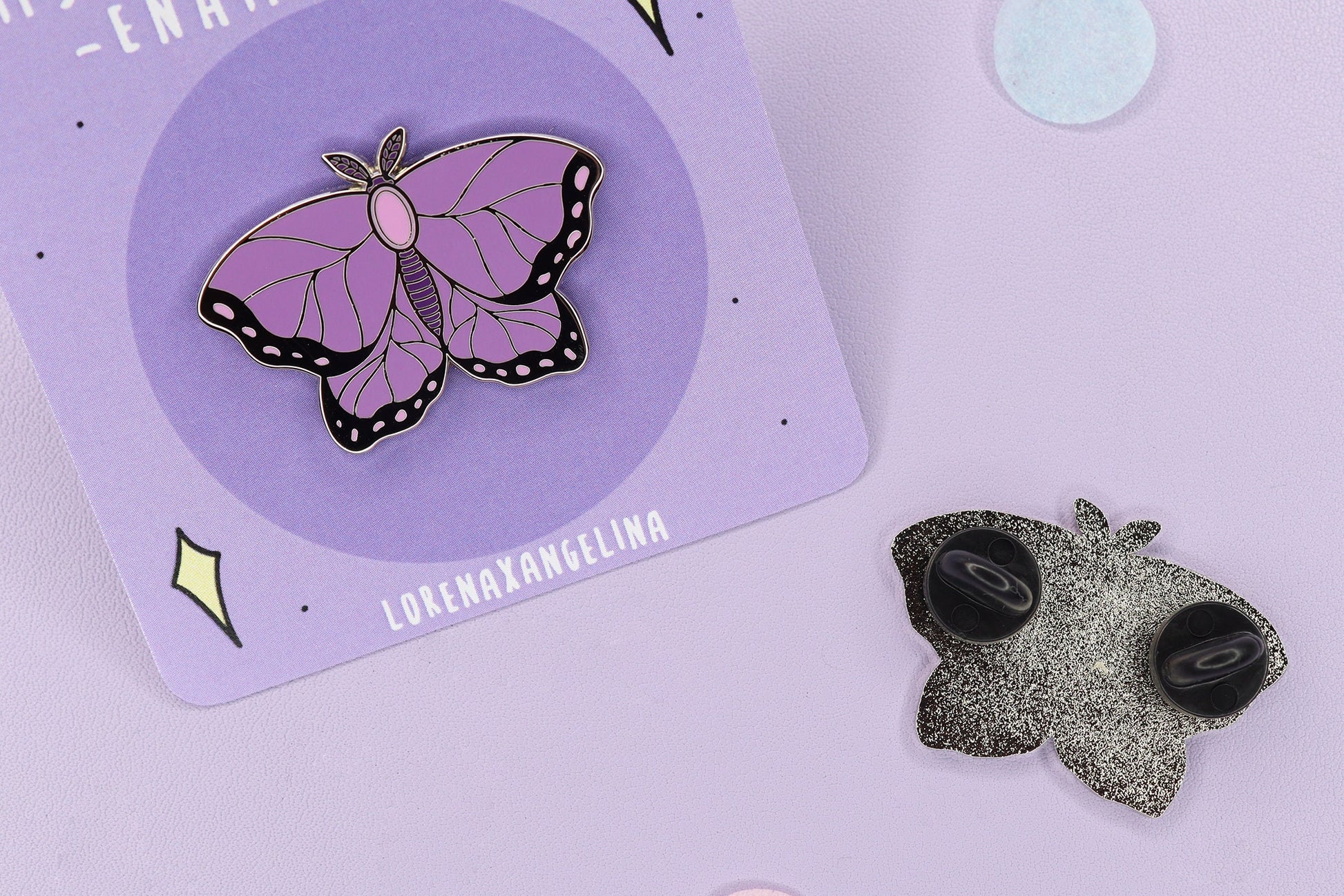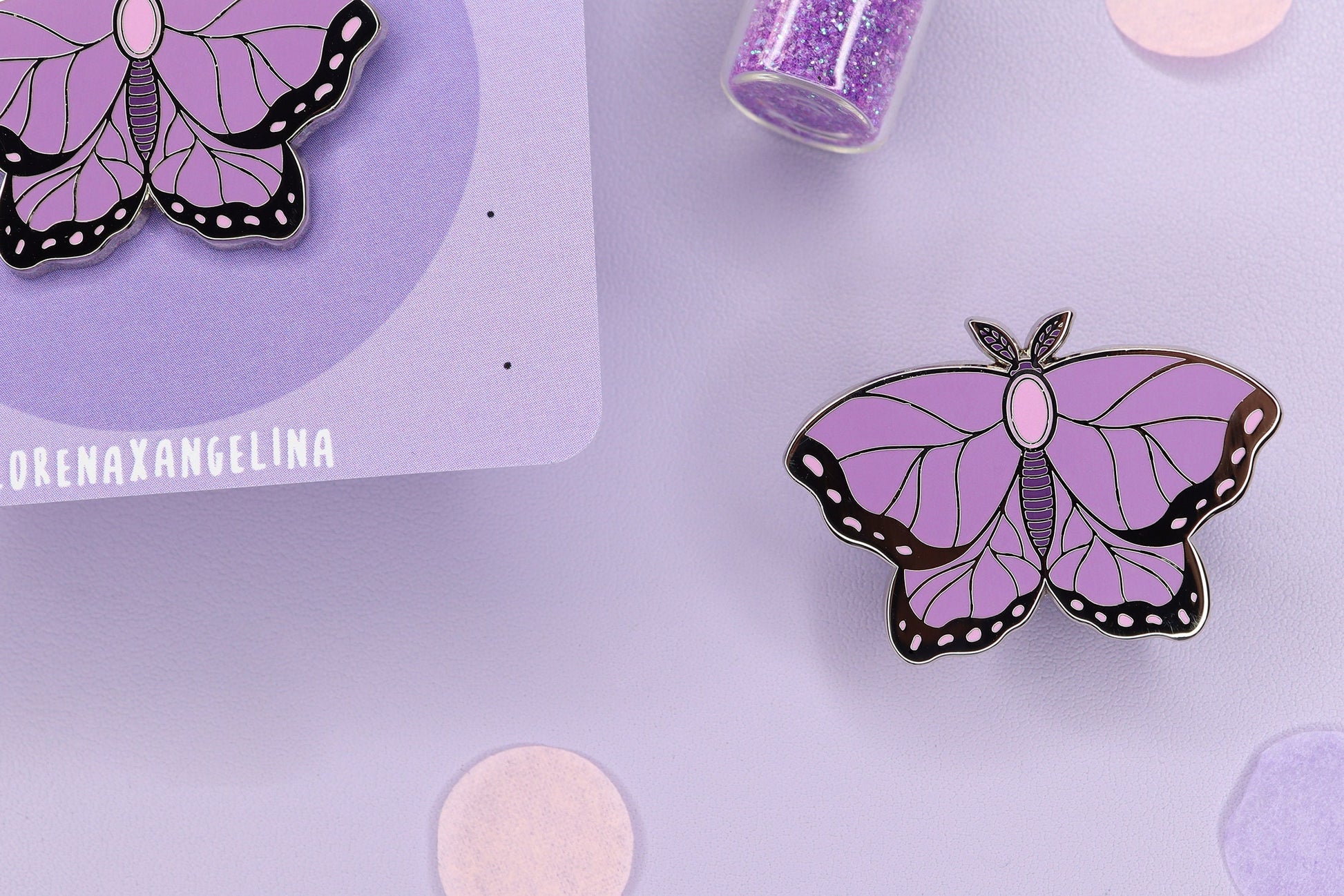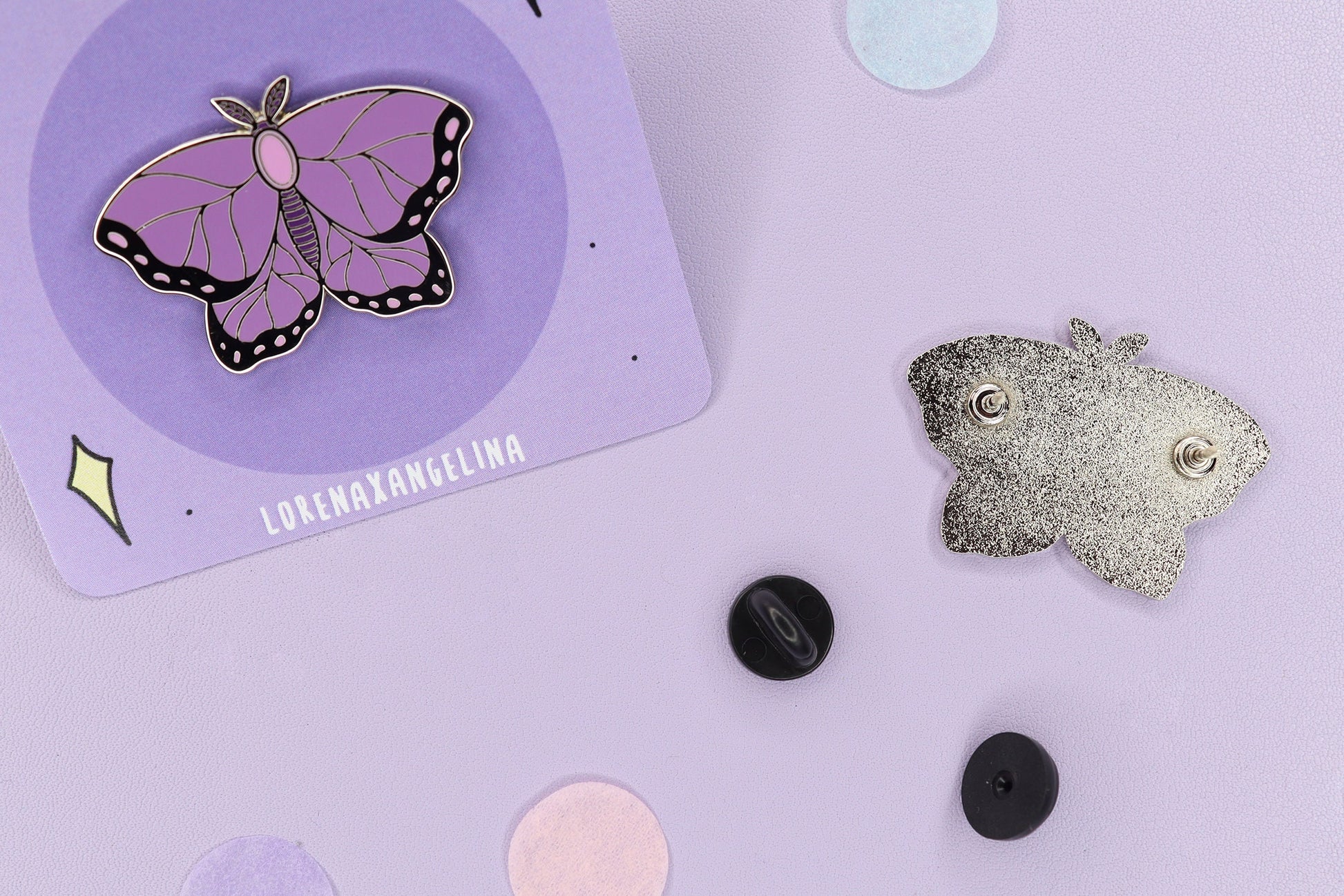 Wunderschöner Hard Enamel Pin mit meiner „Purple Moth“ Zeichnung. Er ist das perfekte Accessoire für zum Beispiel deine Jacke, Rucksack oder Federtasche. Dieser Pin hat auf der Rückseite zwei Verschlüsse für den optimalen Halt!