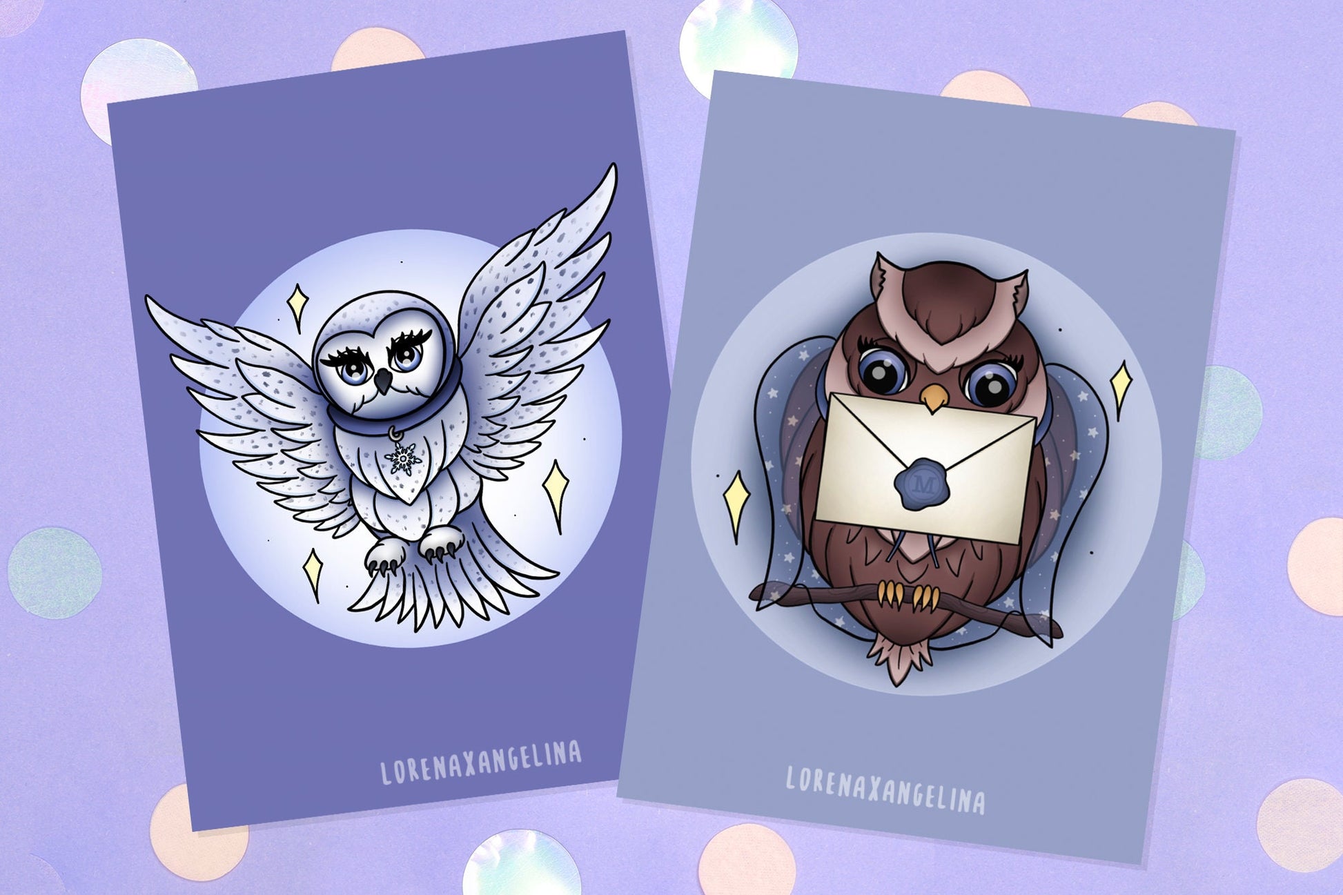 Hochwertige Kunstdrucke mit meiner „Snow Owl“ und "Owl Mail" Zeichnung. Auf premium 280g/m² Fotopapier gedruckt. (Ohne Wasserzeichen)