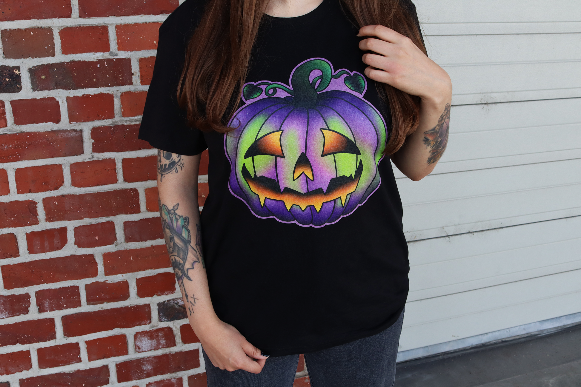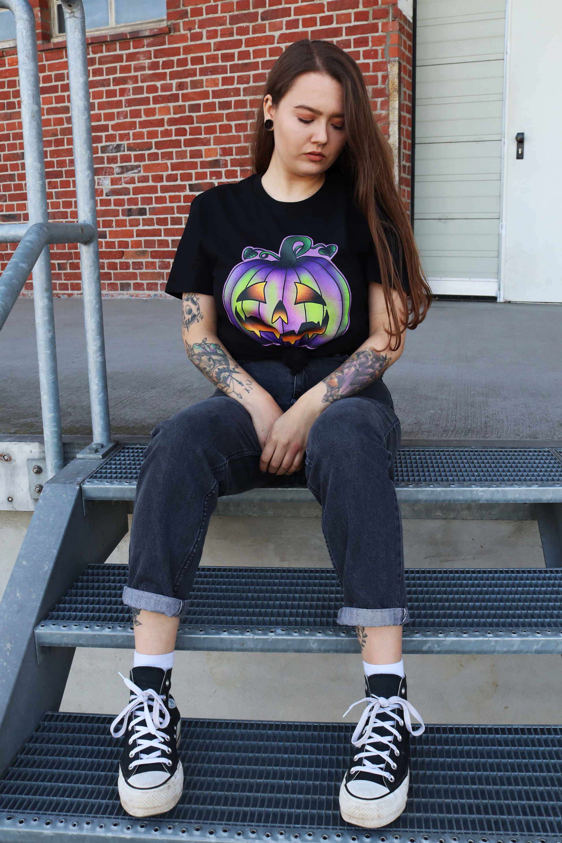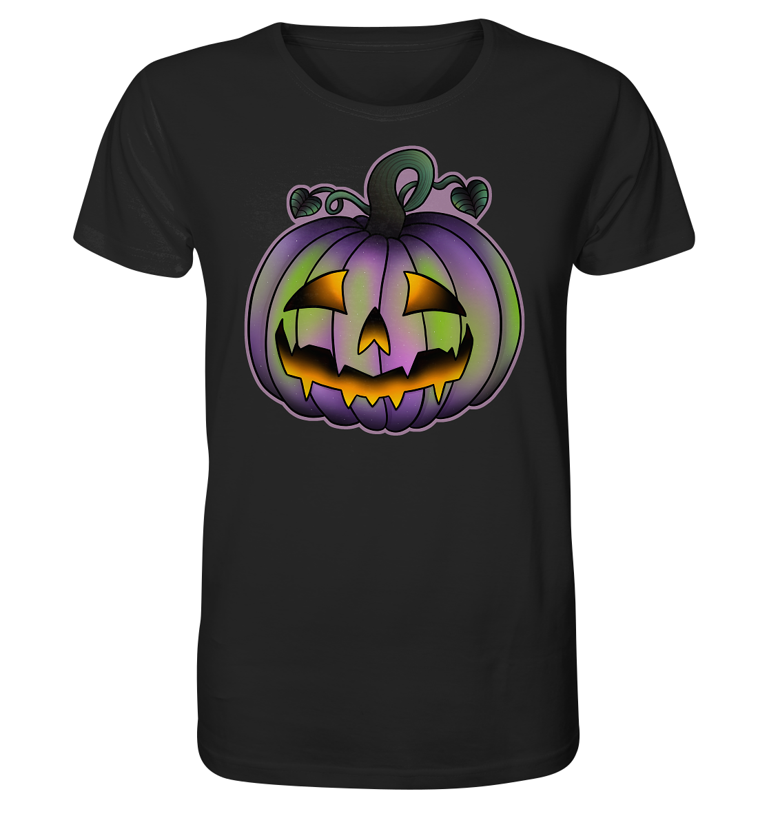 Nachhaltiges T-Shirt mit meiner Kürbis Zeichnung aus 100% Bio-Baumwolle. Durch den qualitativ-hochwertigen Stoff bietet es ein super bequemes Tragegefühl. Der große Druck auf der Vorderseite sorgt für einen besonderen Hingucker. Weitere Infos über die Materialien findest du unter "Produktdetails".