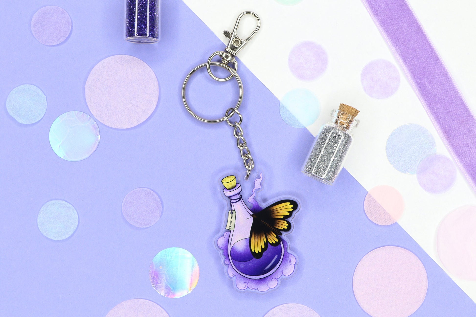 Schlüsselanhänger aus 100% recyceltem Acrylic mit meiner „Witch Potion“ Zeichnung. Er kann wieder komplett recycelt werden. Enthalten ist außerdem ein Haken, damit lässt sich der Anhänger besonders leicht nutzen. Du kannst diesen Anhänger zum Beispiel perfekt an deinem Rucksack oder deiner Tasche befestigen. Der Anhänger wird in umwelt-freundlichen Tüten aus Cellophan verpackt.