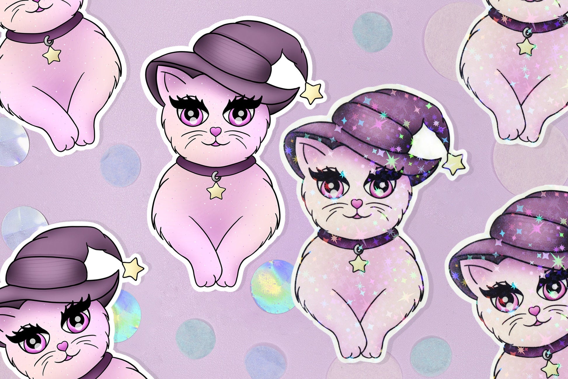 Hochwertiger Aufkleber mit meiner „Witchy Cat“ Zeichnung. Dekoriere deinen Laptop, Smartphone, Wasserflasche oder jeden anderen Gegenstand. Der Aufkleber ist umwelt-freundlich hergestellt.